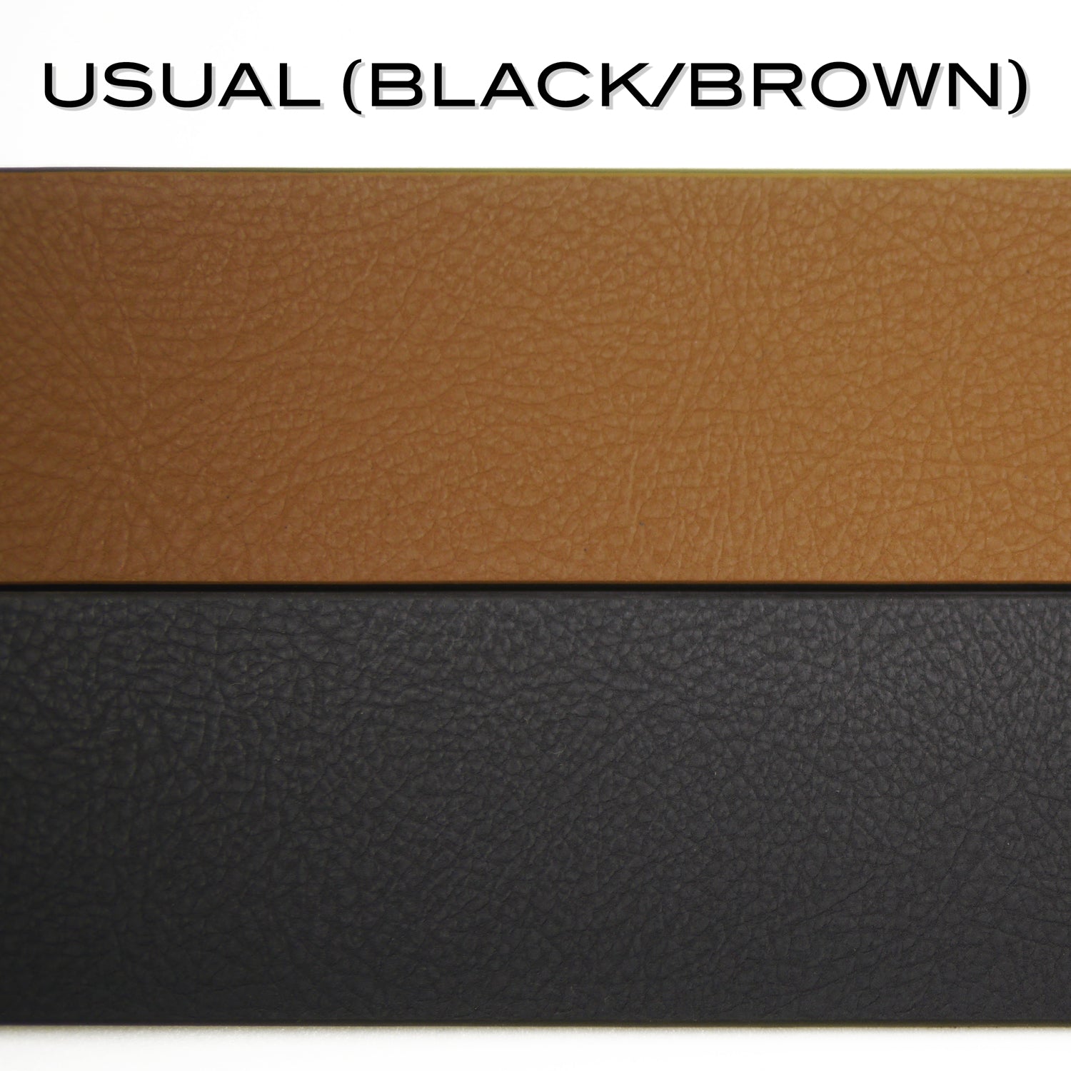 The NEW MIN STRAP has The Seamless 2 in 1 Color Reversible Strap Technology, allowing to swap between colors based on your outfit or preference. There are two choices of NEW MIN Strap: USUAL (Black/Brown) and CASUAL (Blue/Grey). There are four sizes to choose from for your waist size.